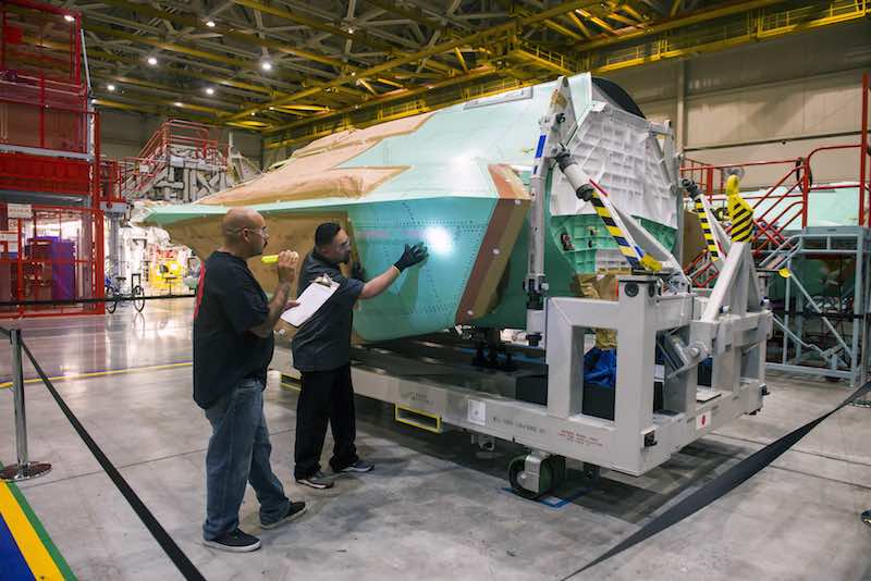 Northrop Grumman is een Amerikaanse defensie-, luchtvaart- en ruimtevaartbedrijf. De romp is aangewezen met de code AX-5 en is de kernstructuur van de F-35 Joint Strike Fighter. In een verklaring meldt het bedrijf: “It is the 207th centre fuselage that the company has produced at its Palmdale site, and the 30th such unit delivered this year.”