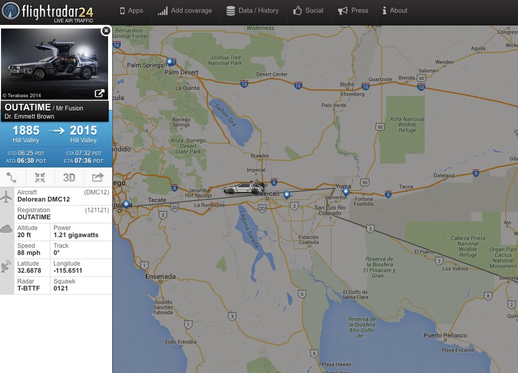 Delen Facebook WhatsApp Twitter LinkedIn Email Flight radar grijpt Back to the Future dag aan om de legendarische DeLorean te tracken. Volg de auto van 1985 naar 2015 op Flightradar! Klaar voor avontuur? Dit is je kans! Werken in de Luchtvaart Officier Vlieger (VWO) – Werken bij Defensie Verschillend VWO Officier Vlieger – Werken bij Defensie Verschillend Onderofficier Luchtgevechtsleiding – Werken bij Defensie Uddel MBO Flightradar24