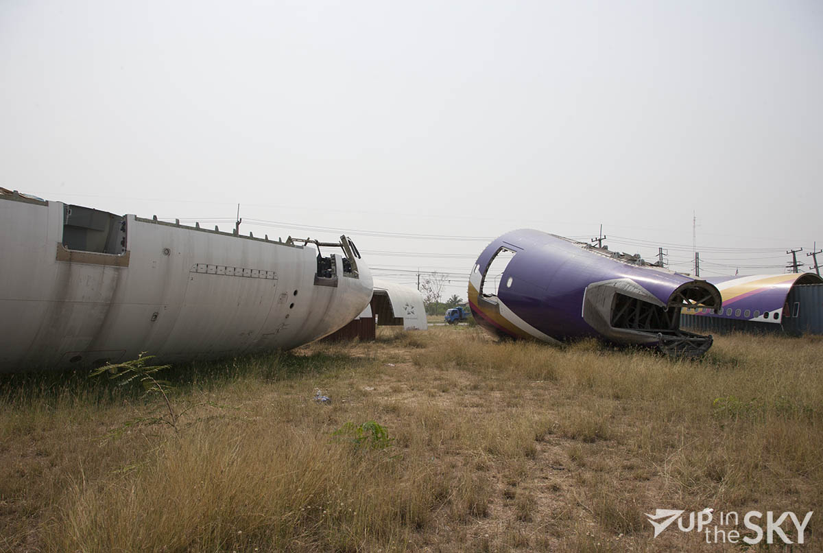 In een buitenwijk van Chiang Mai, Thailand ligt een verlaten A300-600 van Thai Airways.