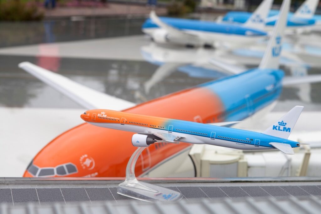 KLM onthulde vandaag ook haar deels oranje gespoten Boeing 777 miniatuur in Madurodam.