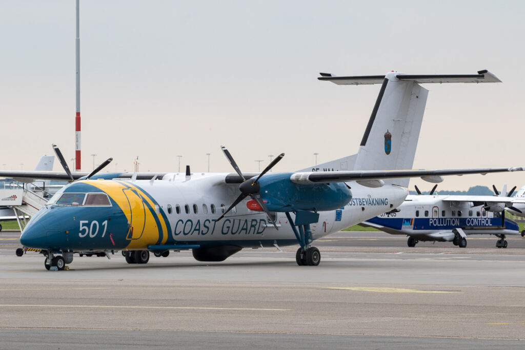 Op Schiphol zijn sinds afgelopen maandag drie buitenlandse kustwacht-toestellen aanwezig. De Nederlandse kustwacht wil op dit moment nog niets bekend maken over de aanleiding, maar vermoedelijk gaat het om een oefening.