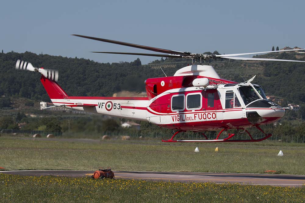 De brandweer heeft een aantal prachtige rood-witte heli’s gestationeerd op het vliegveld van Arezzo. Het gaat om de types Agusta Bell AB206 en 412. De helikopters worden niet alleen ingezet om (bos)branden te blussen, maar ook om mensen te redden. Ten tijde van het bezoek van Up in the Sky vertrok er een Bell 412 naar Perugia in Umbrië om daar stand-by te staan. De helikopters zijn in verband met de stand van de (Toscaanse) zon het beste ‘s morgens te fotograferen.