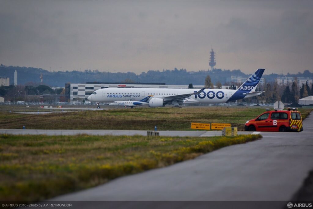 She's in the skies! Congratulations @Airbus – we just witnessed the first ever take off of the #A350-1000 here in Toulouse. #A350FF ✈️ pic.twitter.com/dFesNjPZRH