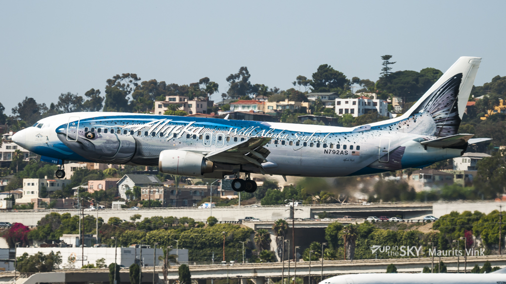 The Flying Fish. Met deze fraai gekleurde Boeing 737-400 promoot Alaska Airlines ‘Wild Alaska Seafood’. Het vliegtuig is inmiddels bijna 20 jaar in dienst en is tegenwoordig ook in de reguliere livery van Alaska Airlines te zien.