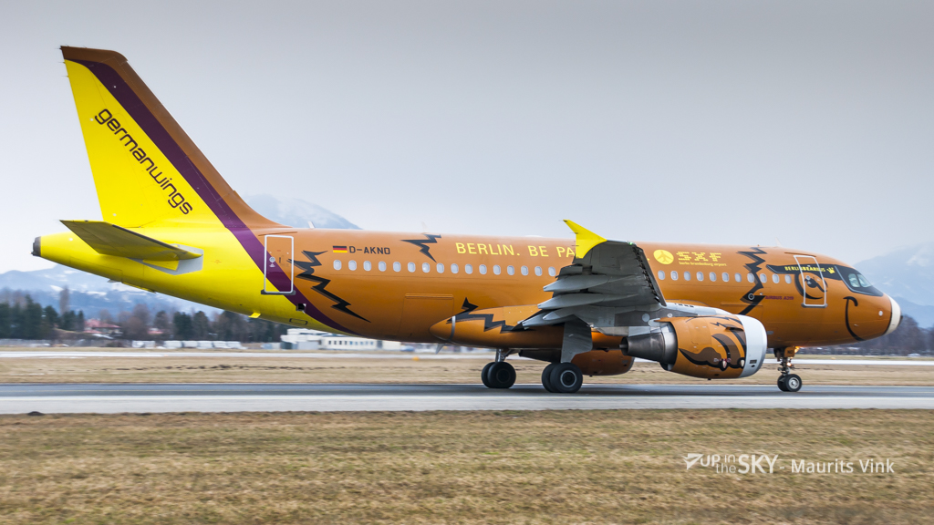 Germanwings beschilderde deze Airbus A319 in speciale kleuren om Berlijn Schonefeld te promoten. Dit vliegtuig vliegt nu weer gewoon rond in de saaie Germanwings kleuren.