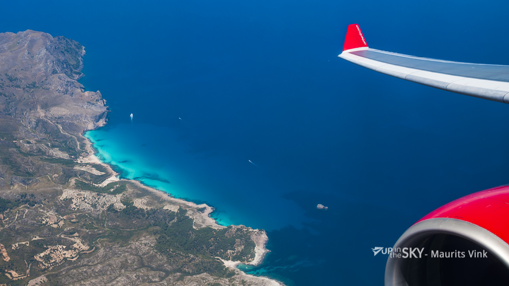 Door dit uitzicht vergeet je weer even die passagier voor je die nu voor de derde keer zijn stoel naar achter heeft gedaan.