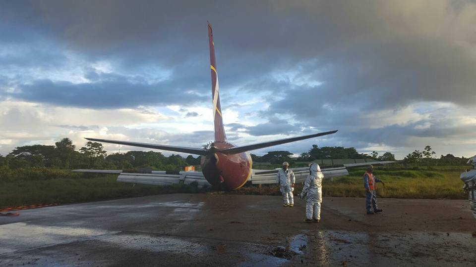 Een Boeing 737-400SF van AerCaribe is op Leticia Airport, Colombia, doorgeschoten na de landing. Dat melden de Colombiaanse luchtvaartautoriteiten.