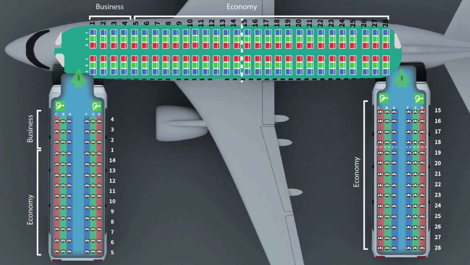 Een van de grootste problemen is het opbergen van de handbagage. Het neemt kostbare tijd in beslag tijdens het boarden. Student Alex Brink heeft hier een oplossing voor en plaatst de handbagage in een speciale ruimte onder de stoel voor je. Onder de stoelen wordt ruimte gemaakt door de vloer van het vliegtuig te verlagen.