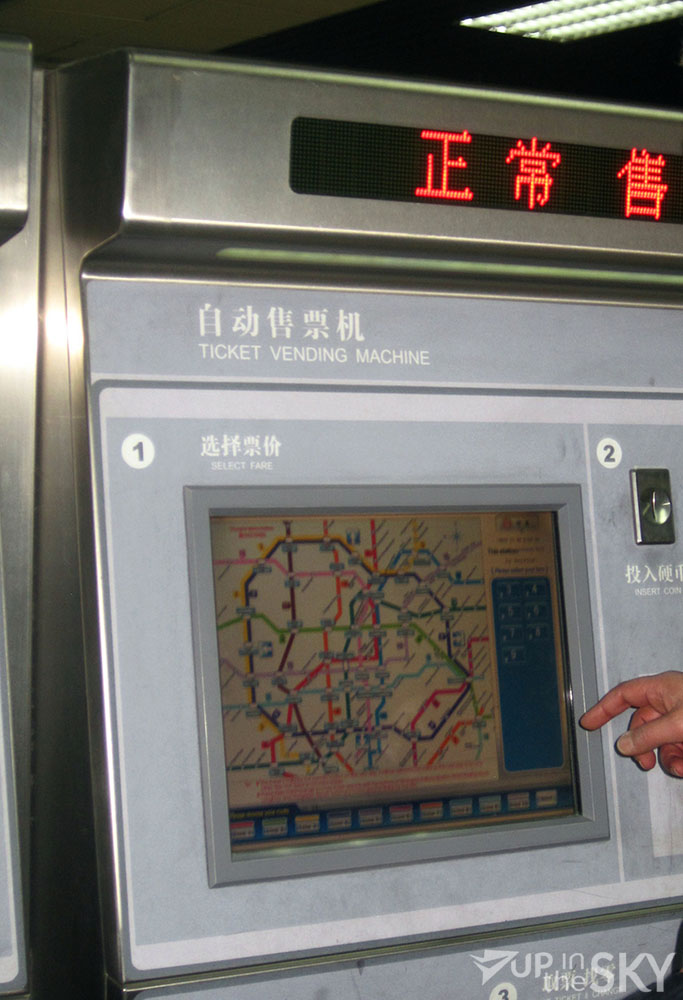 Op alle metrostations staan batterijen aan kaartautomaten. Rechtsboven in het scherm kun je op ‘english’ klikken en dan wijst het zich vanzelf. Betalen kan alleen met contant geld. Het is verstandig om de yuans al op Schiphol te halen, geldautomaten geschikt voor Europese kaarten zijn schaars.