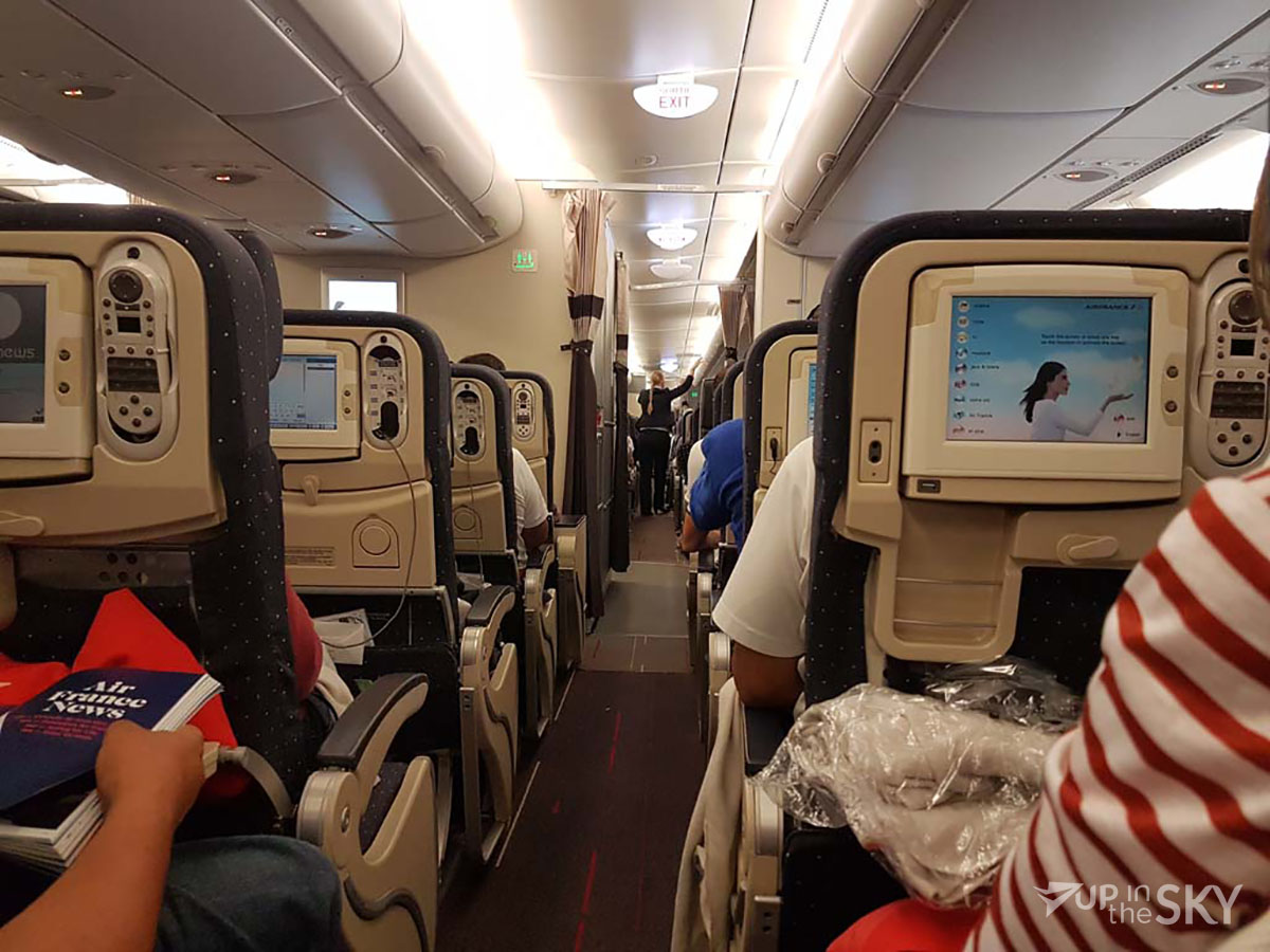 Omdat het de nachtvlucht naar Parijs was, was de service aan boord wat soberder, zei het niet slecht. Ongeveer een uur na het opstijgen werd het eten geserveerd. Er was keuze tussen vlees of vegatarisch. Het eten was oké, al was het niet heel top, om eerlijk te zijn. Na het eten was er koffie. Het grootste gedeelte van de vlucht was de crew in de pantry. Er stond water en fris bij de pantry om te pakken. Ongeveer drie uur voor de landing het ontbijt met daarna weer koffie geserveerd.