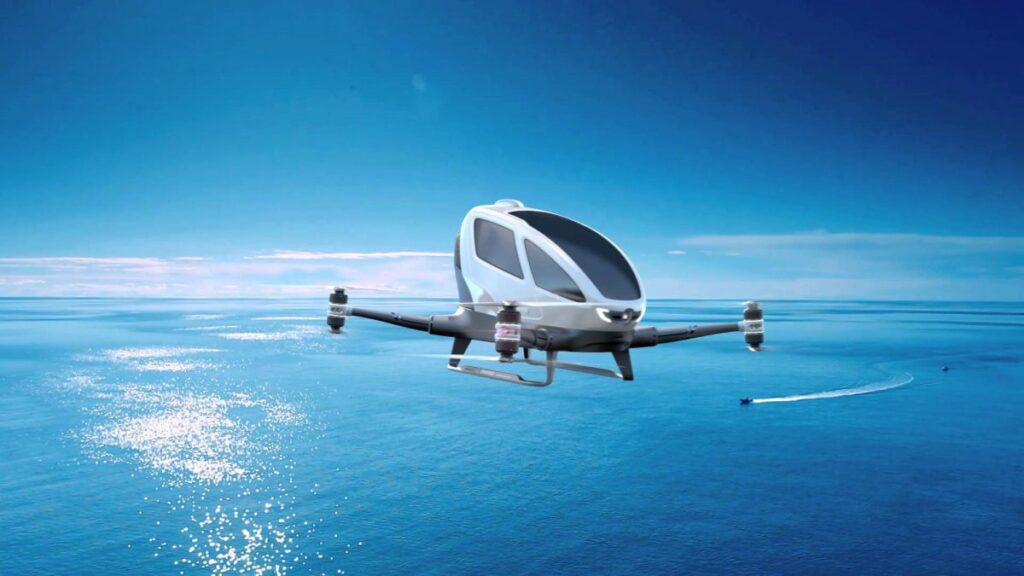 Dubai voert testen uit met de eenpersoons Ehang 184, een zelfvliegende taxi die ingezet zal worden voor personenvervoer.