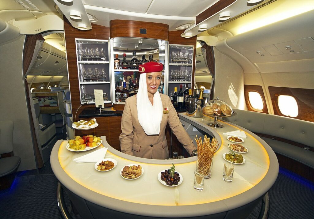 Aan boord van de A380 van Emirates krijgen businessclasspassagiers gratis champagne geschonken. De stewardess goot de overgebleven drankjes terug in de fles. Passagier Yevgeny Kayumov betrapte haar. “Misschien dronk ik wel champagne die andere al in hun mond hebben gehad.”