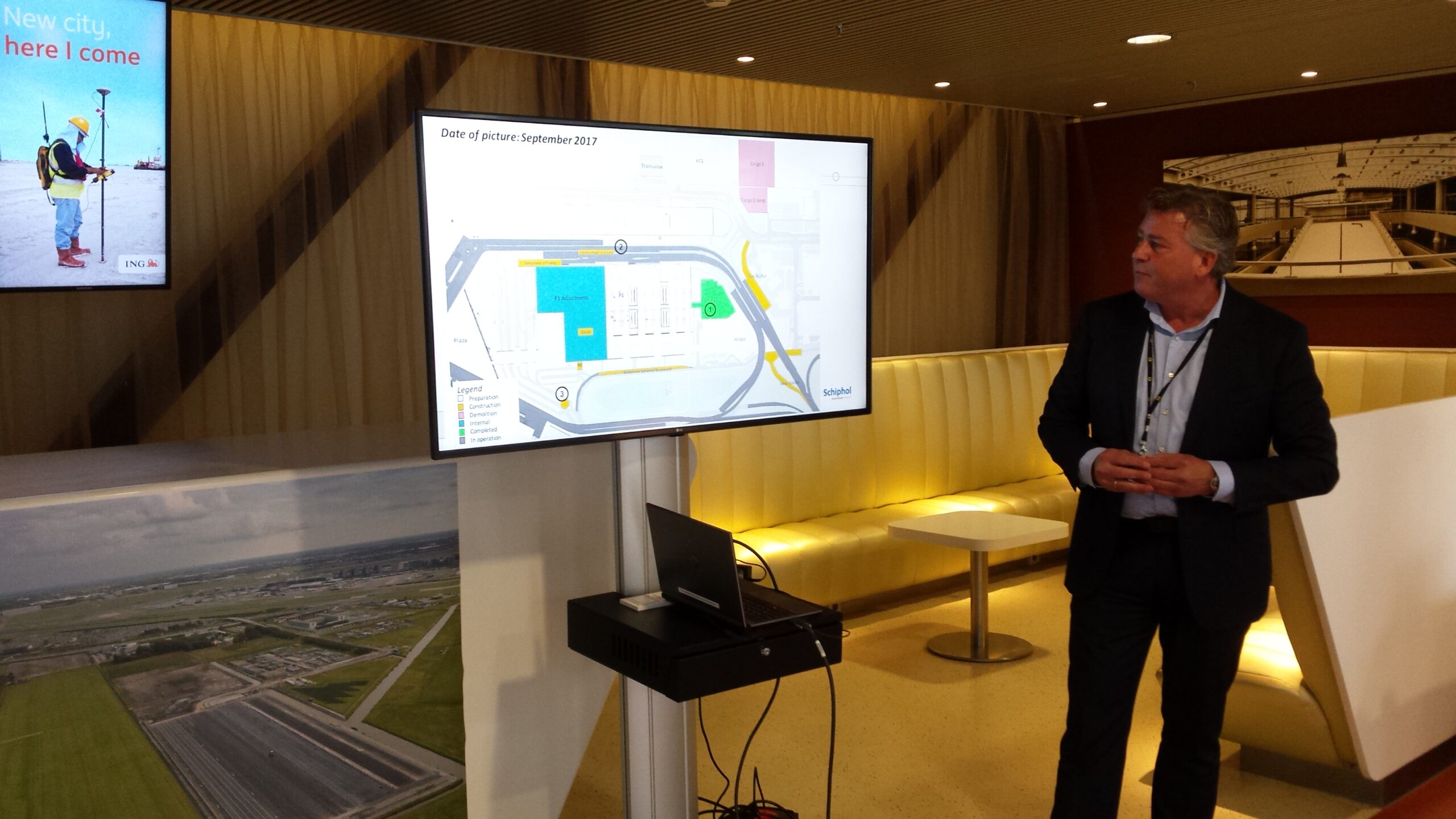 Dieme Ketel, Managing Director van Schiphol Parking & Mobility Services, presenteerde in de hal van de excellence parking het nieuwe parkeerplan van Schiphol.