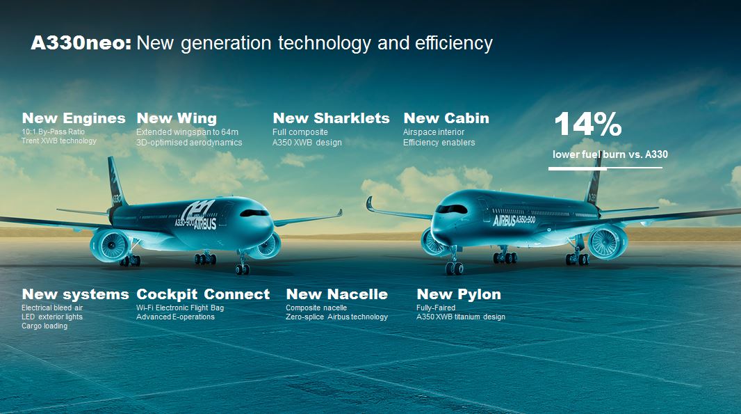 Deze generatie toestellen beschikt ten opzichte van de huidige A330’s over nieuwe motoren en verbeterde vleugels, waardoor ze zuiniger en stiller moeten zijn. Er zijn ruim 200 exemplaren door maatschappijen besteld.