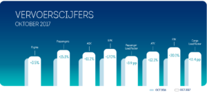 In oktober van dit jaar vervoerde Brussels Airlines 865.673 passagiers, dat zijn 113.479 meer reizigers dan in dezelfde maand vorig jaar. Oktober is de laatste maand in het zomerseizoen van Brussels Airlines en trekt door het begin van de herfstvakantie veel toeristen aan en worden er traditioneel gezien veel zakenreizen gemaakt in oktober. De bezettingsgraad van passagiers tijdens de vluchten steeg met 3,9 procent naar 78,9 procent.