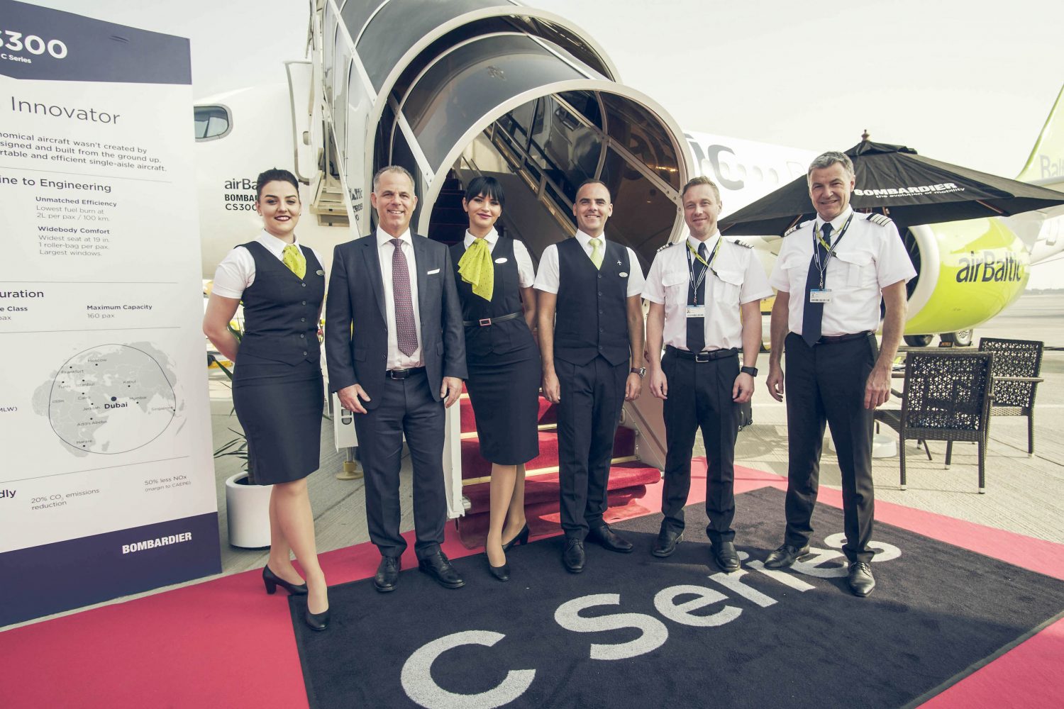 De Letse luchtvaartmaatschappij airBaltic toont samen met vliegtuigbouwer Bombardier de nieuwe CS300 op de Dubai Airshow, zo laat de airline weten.