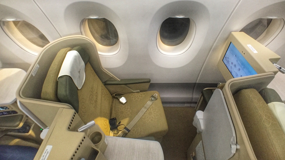De Business Class stoel op de Airbus A350 is in een ‘staggered’ 1-2-1 lay-out. Die biedt altijd toegang tot het gangpad, maar eigenlijk alleen een stoel direct bij het raam, die ik gelukkig had, biedt echt privacy. Qua type is de stoel vrijwel gelijk aan de stoelen die bijvoorbeeld Garuda Indonesia biedt op haar vluchten naar Amsterdam.