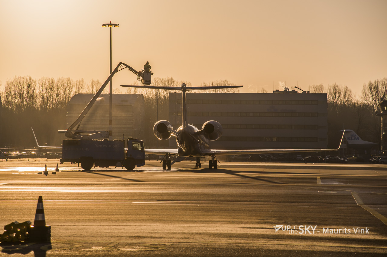 Als het aan de grond gevroren heeft moeten de vliegtuigen voordat ze de lucht ingaan ijsvrij gemaakt worden. De mechanische onderdelen, waaronder de vleugelkleppen, worden bespoten met een de-icing vloeistof, een mix van water en glycol, dat tot 70 graden verwarmd wordt. Hiermee worden de ijsresten van de vliegtuigen verwijderd zodat alle onderdelen naar behoren kunnen functioneren.