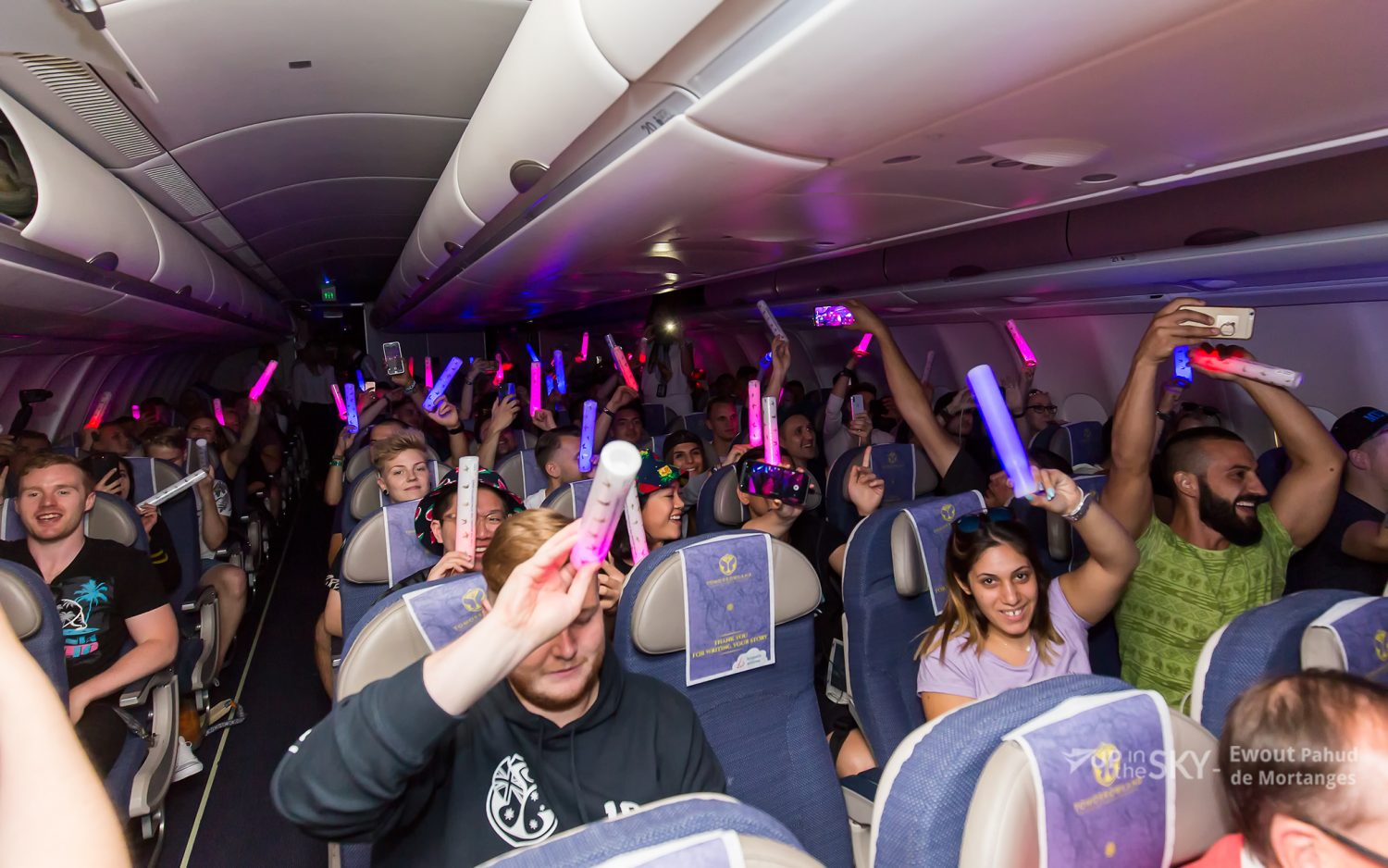 Donderdag voerde de maatschappij een speciale Tomorrowland-vlucht uit om festivalgangers uit Frankfurt op te halen. Tijdens de vlucht zorgde een DJ dat de passagiers alvast in de feeststemming kwamen. Fotograaf Ewout Pahud de Mortagnes vloog mee.