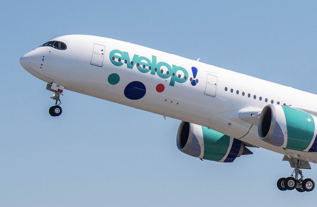 Het Spaanse Evelop Airlines heeft haar eerste A350 ontvangen. De tweede, en meteen laatste, A350-900 volgt volgend jaar. Evelop! is een echte vakantievlieger. De Airbus komt in een opstelling van maar liefst 432 economy stoelen. Die staan in een 3-4-3 indeling; normaal is de A350 voorzien van negen stoelen op een rij. Evelop vliegt met het nieuwe toestel vanaf mei naar Cancun, Havana en Punta Cana. De thuisbasis in Madrid. De eerste vluchten met passagiers zijn vanaf april op binnenlandse routes. De maatschappij vlieg took met één A320, één A330-200 en drie A330-300’s.