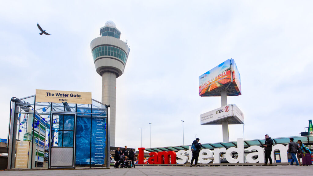 Toeristen moeten meer kraanwater drinken, is de insteek van de campagne. Hervulbareflessen producent Dopper heeft een stand op het plein voor Schiphol Plaza opgezet, The Water Gate. Volgens Dopper: “en spetterende bewustwordingswereld van water en weetjes. Op deze bijzondere bestemming worden internationale bezoekers geactiveerd om voor water uit de kraan te kiezen, een positieve gedragsverandering die per jaar per persoon al snel 40 wegwerpflessen bespaart.”