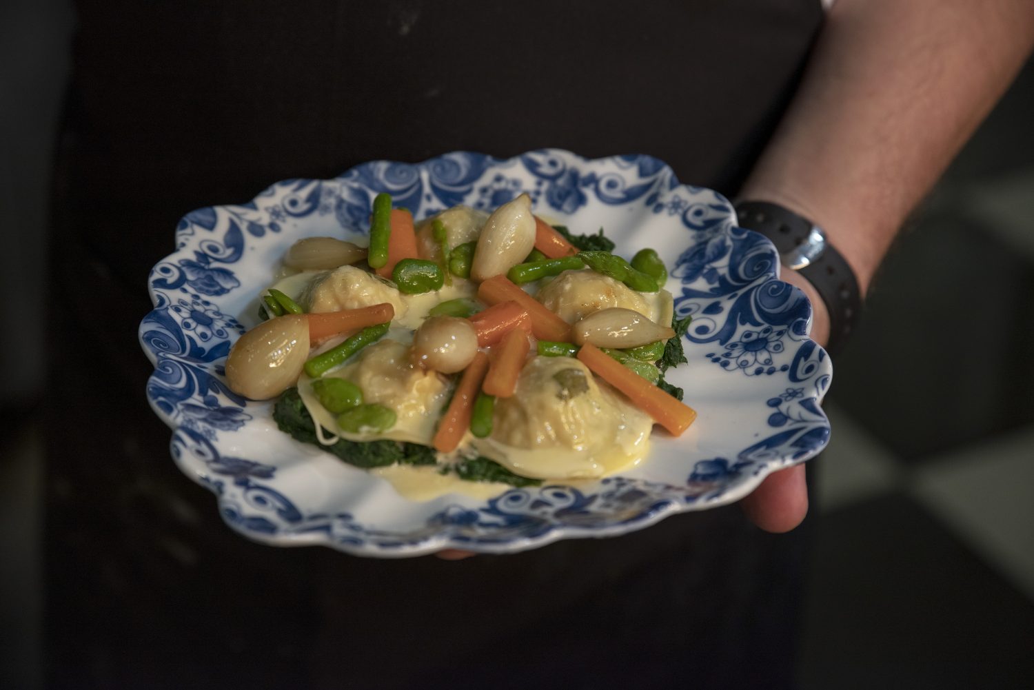 ‘De opdracht voor de kookwedstrijd was om pasta met duurzame vis te maken. De gerechten werden gekeurd op smaak, presentatie, het gebruik van ingrediënten, bij voorkeur van Nederlandse bodem en of het gerecht ‘kan vliegen.’ Stikvoort won met zijn ravioli van schelvis in Noilly Prat-saus met zuring. Topkok Jonnie Boer beoordeelde de creatie als ‘heel erg lekker’, aldus KLM.