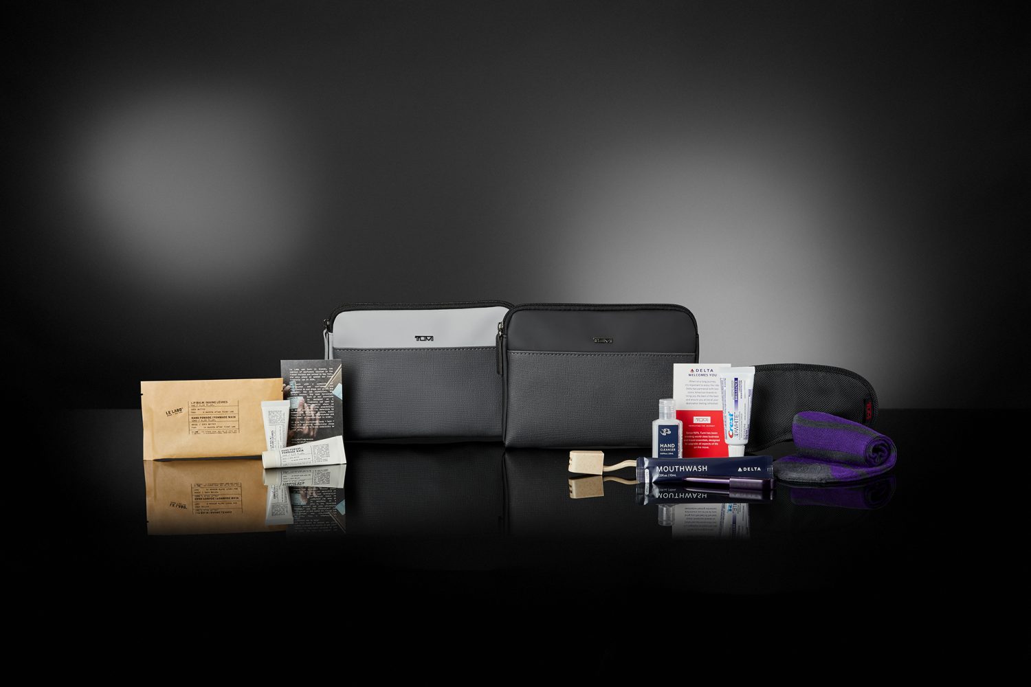 “Een maatregel die jaarlijks 14 ton aan plastic afval scheelt.” Voor het samenstellen van de toilettasjes werkt Delta al jaren samen met TUMI. “Net zoals Delta zet TUMI zich in om de impact op het milieu te verminderen. De nieuwe toilettassen bevatten geen plastic verpakkingsmateriaal meer en zijn ook geschikt om een tablet in te stoppen”, aldus Delta.