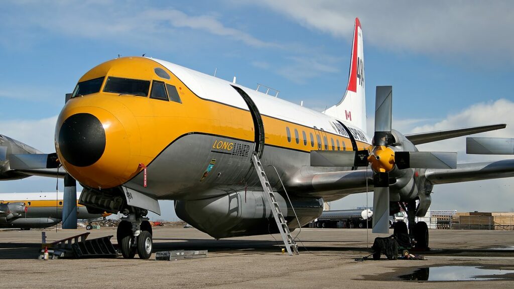 Een Lockheed L-188C landde zaterdag zonder landingsgestel op Red Deer Regional Airport. Er is niemand gewond geraakt.