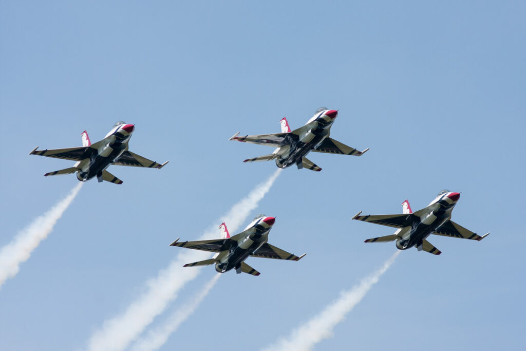 De demonstratieteams van de Amerikaanse luchtmacht en Amerikaanse marine zullen de komende twee weken samen een aantal ‘fly overs’ uitvoeren boven verschillende Amerikaanse steden. Daarmee willen ze het zorgmedewerkers eren en ook ander essentieel personeel een hart onder de riem steken.