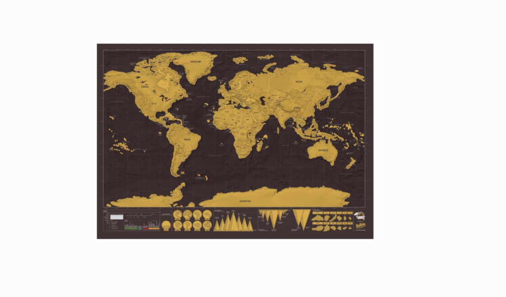 Op bol.com kun je een wereldkaart kopen voor boven je driezitsbank Sven. Het is een soort kraskaart. Je kunt de gouden coating wegkrabben, om te laten zien waar je allemaal geweest bent.