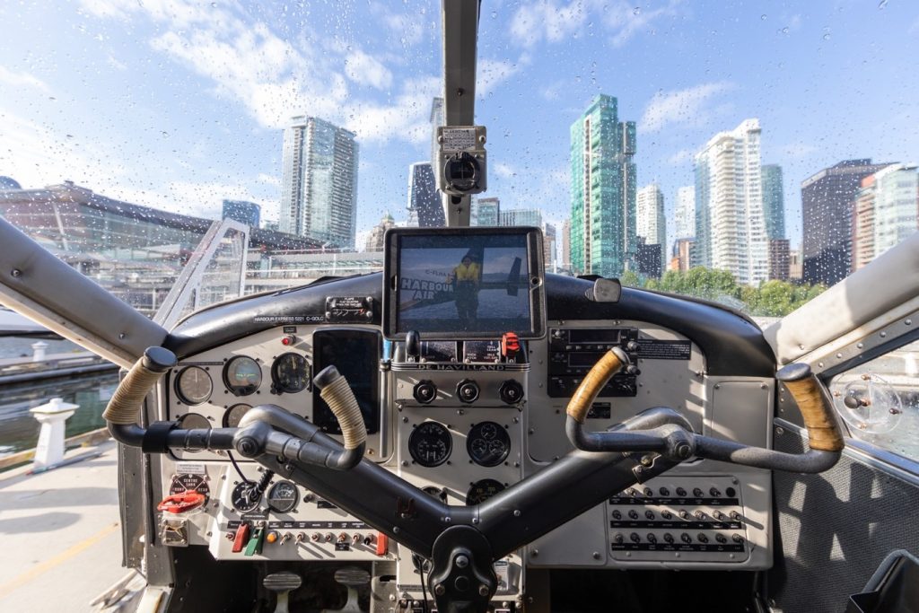 Normaliter mag één passagier plaatsnemen naast de piloot, maar vanwege de coronamaatregelen was dit helaas niet mogelijk. Anders dan in een conventioneel lijntoestel kregen we uitleg over de werking van de deuren en een korte safety video gepresenteerd op een iPad. De totale vluchtduur zou zo’n 20 minuten bedragen waarbij we een stukje Noord Vancouver, Stanley Park en Downtown Vancouver te zien zouden krijgen.