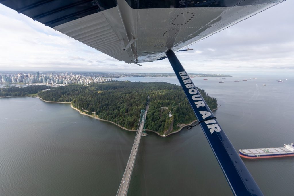 We stegen na een gebruikelijke engine run-up op in oostelijke richting om gelijk richting het westen te draaien en koers te zetten naar de Lion’s Gate Bridge (de verbinding tussen Stanley Park en Noord Vancouver).