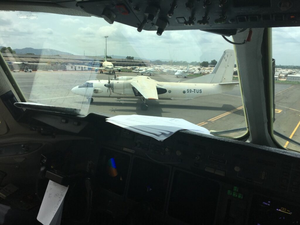 Ik ben naar een hele hoop bijzonderdere plekken geweest, dat is het mooie van het ACMI (red: aircraft, crew, maintenance and insurance) vliegen. Afrika is inderdaad erg indrukwekkend, “a whole different world” en ik moet zeggen dat Bangui in de Centraal Afrikaanse Republiek ook de meest bijzondere plek is waar ik ben geweest in de tijd dat het vluchtelingenkamp nog op de luchthaven was. Spelende kinderen, families met ezels voor hun wagentje, VN-soldaten in hun land cruiser met een groot geweer achter op, allemaal op de baan terwijl wij aan het landen zijn. Hierdoor hebben we hier ook vaak een doorstart moeten maken.