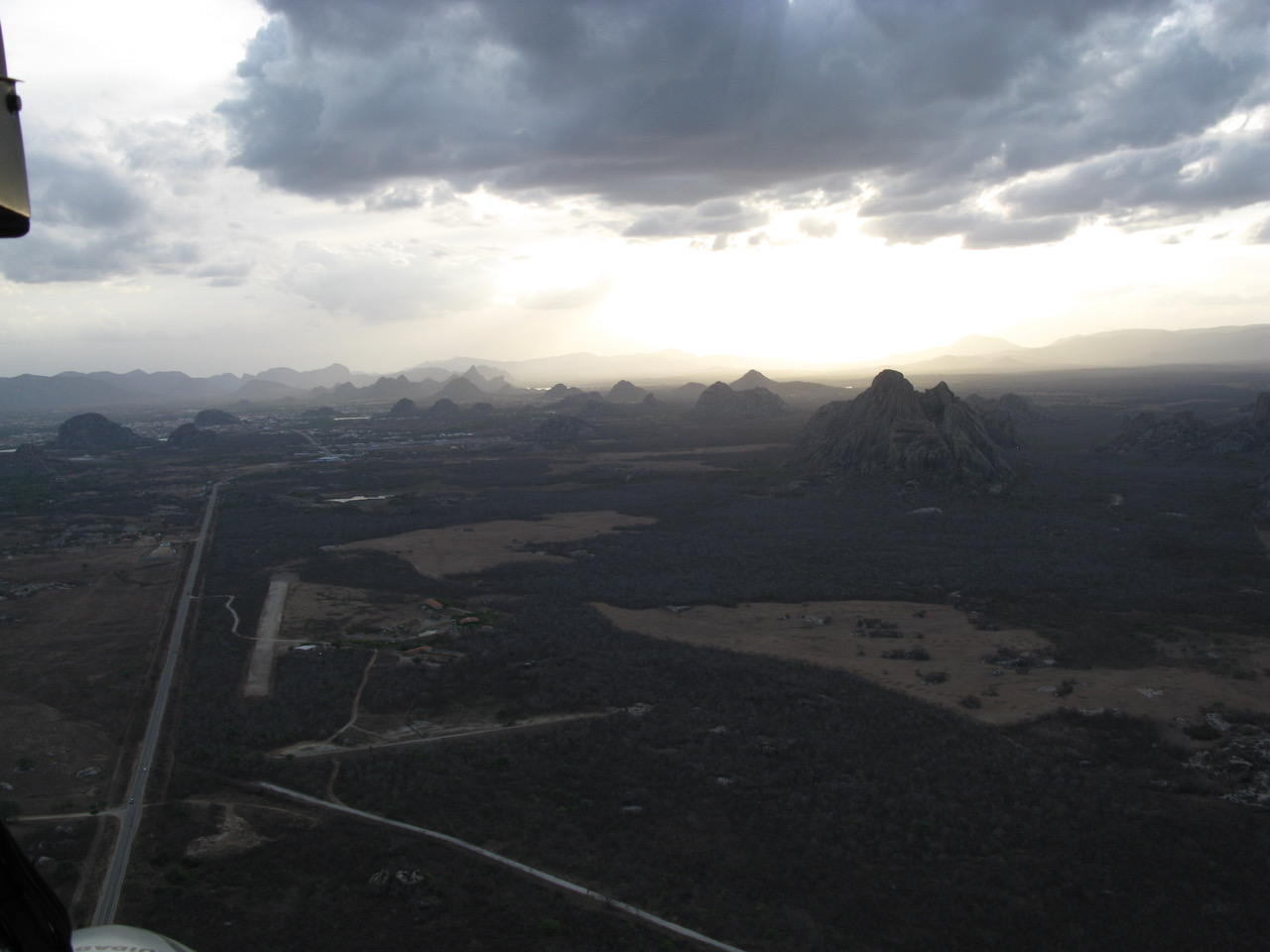 Het is al laat, en omdat de zon dus laag staat, zijn de Inselbergs op hun fraaist. Niet langer geluld dus: vliegen! Het zal u niet verwonderen: in een Braziliaans vliegtuig. De Orion Eagle, voorzien van een VW boxermotor, omgebouwd om te vliegen op 100% alcohol. Dat goedje is in Brazilië een zeer populaire brandstof. Wordt enthousiast mee-gemixt in allerlei autobrandstoffen. Ultralights en SEP’s vliegen er soms 100% op. Eerdergenoemd bedrijf Embraer heeft er zelfs een speciale cropduster ontwikkeld, de Ipanema, waarmee de boeren in het immense land (Brazil is net zo groot als de VS zonder Alaska) kunnen vliegen op de alcohol die ze zelf uit hun eigen suikerriet destilleren.