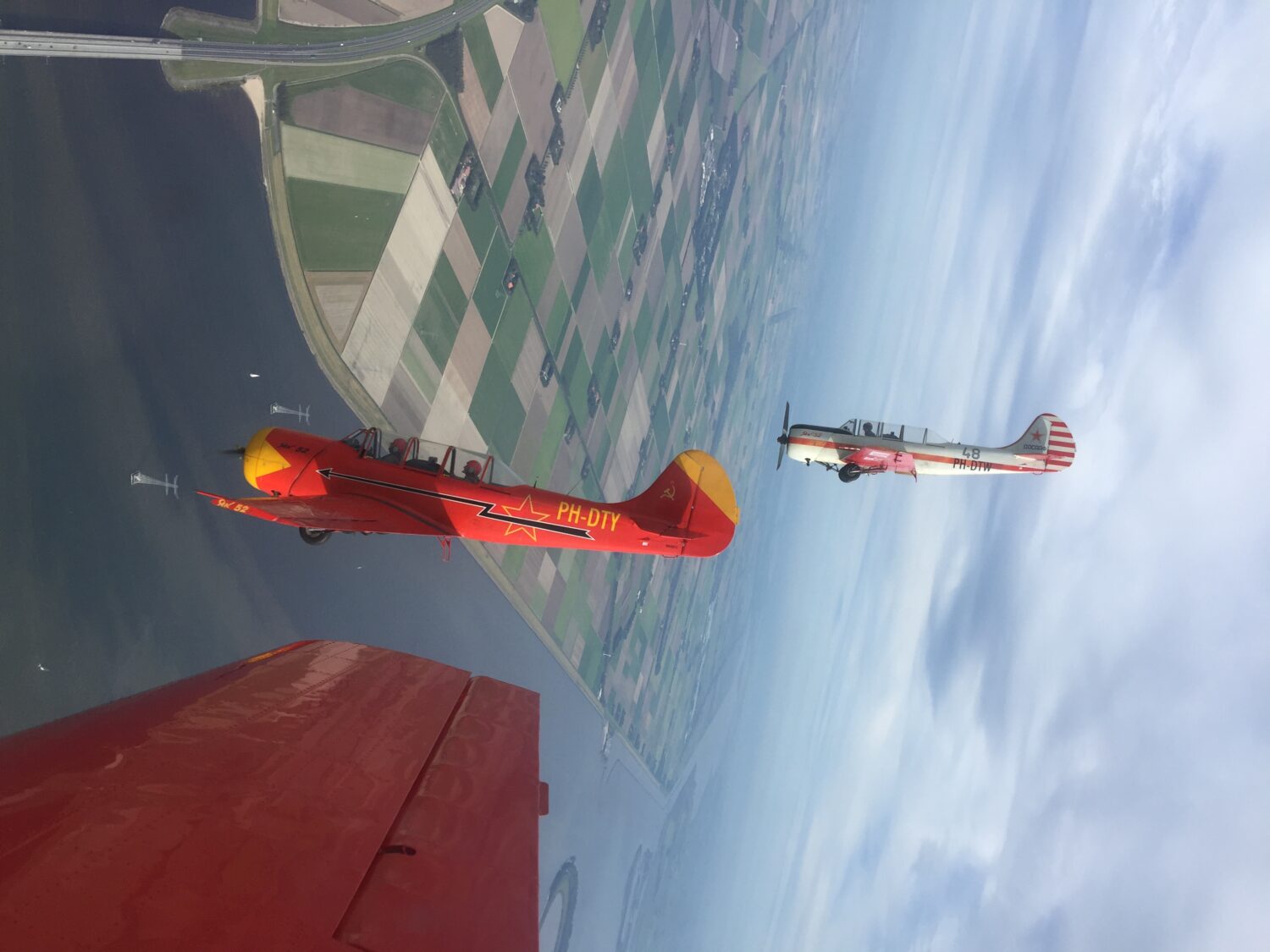 Is het moeilijk? In een licht tot zwaar overpowered vliegtuig is het een stuk makkelijker dan in een gewoon vliegtuig. Ik ben een keertje mee geweest met de Vliegclub Rotterdam, en daar vliegen ze met vier Robins formatie op de laatste acht millimeter van hun gashendel. Petje af. Als je bij een Yak-52 het gas dicht trekt remt-ie abrupt af, als gooide er iemand een remparachute naar buiten. En als je het gas weer openschuift, springt hij naar voren als een stal-koe die de zomerwei weer in mag. Veel authority, heet dat. Makkelijker dus!