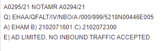De Notice to Airmen, NOTAM, geeft aan dat er geen inkomend verkeer meer mogelijk is tot en met 23:00 uur UTC, oftewel 24:00 uur lokale tijd in Nederland. Er vertrekken nog wel vluchten vanaf de luchthaven zo is te zien op Flightradar24.