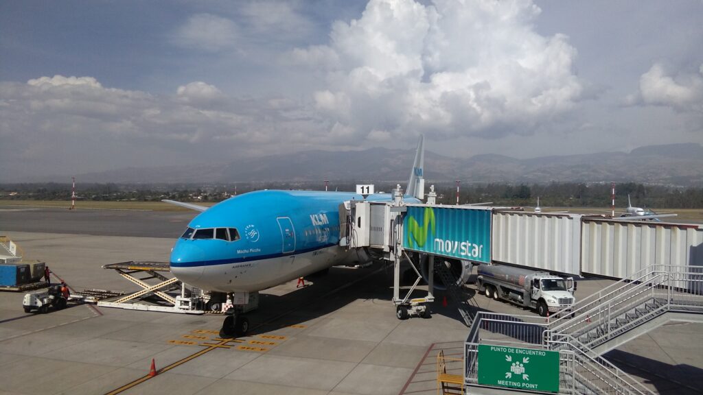 Kijk in deze video mee hoe de piloten van een Boeing 777 van KLM door de bergen naar het vliegveld van het Ecuadoriaanse Quito vliegen.