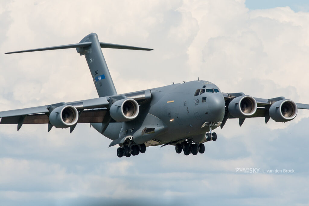 De Boeing C-17A Globemaster III van de Amerikaanse luchtmacht is vanmorgen geland op Vliegbasis Volkel. De C-17 kwam vanuit Lakehurst in Amerika en behoort tot de 62ste Air Wing McChord, die bekend staat om het vervoeren van nucleaire wapens.