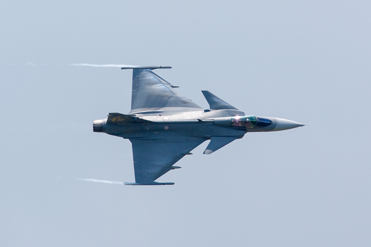De testvlucht vond plaats in het luchtruim boven de faciliteiten van Saab in Linköping, Zweden, op vrijdag 19 maart. De Gripen werd uitgerust met een vervangend luik dat was geproduceerd door middel van een 3D-printer. Hierbij werd gebruik gemaakt van een nylon polymeer, PA2200 genaamd. Dit werk is een grote stap in de richting van 3D-geprinte reserveonderdelen die kunnen worden gebruikt voor snelle reparaties aan gevechtsvliegtuigen die schade hebben opgelopen tijdens operaties.