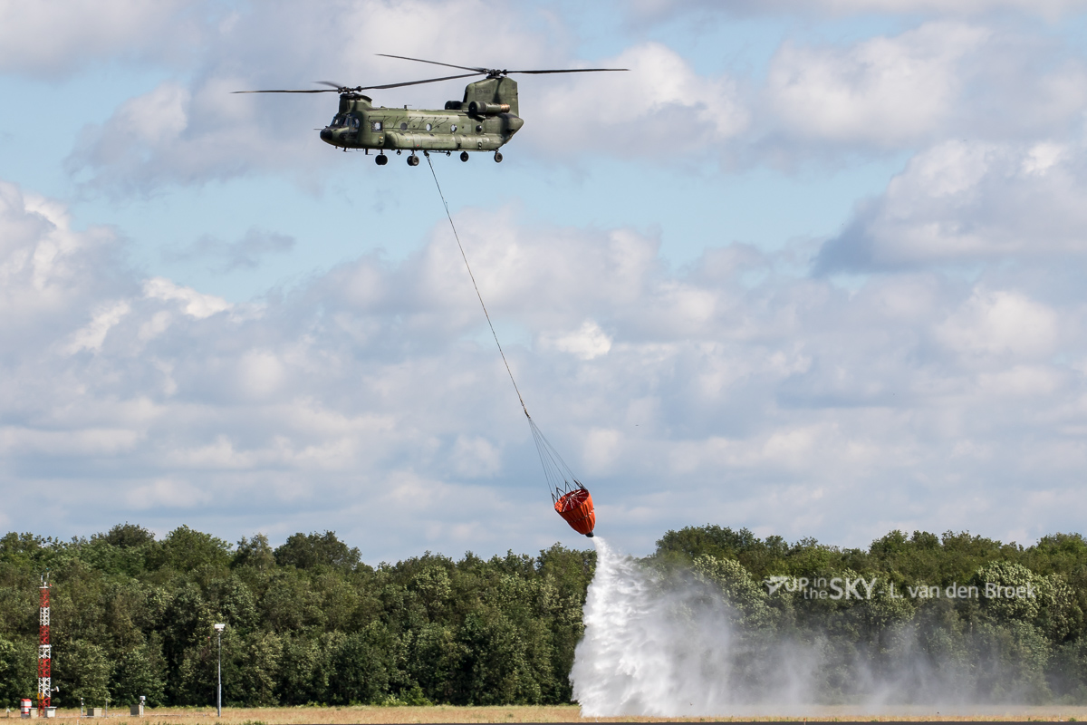 De helikopters zijn gestationeerd op vliegbasis Gilze-Rijen. Daar vertrekken de Chinooks met een bambi bucket, een grote oranje zak waar water in vervoerd kan worden. Zo’n bucket kan tot wel 10.000 liter water in één keer meenemen en inzetten om de brand te bestrijden. Mocht er meer hulp vanuit Nederland nodig zijn, staan de Chinooks klaar om te helpen.