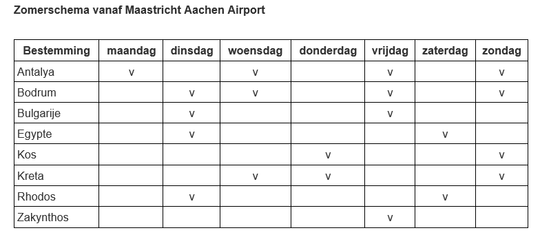 Corendon voert vanaf 8 juni wekelijks vanaf Maastricht Aachen Airport een vakantievlucht naar Rhodos uit. Naar verwachting komen daar later in de zomer nog meer bestemmingen bij.