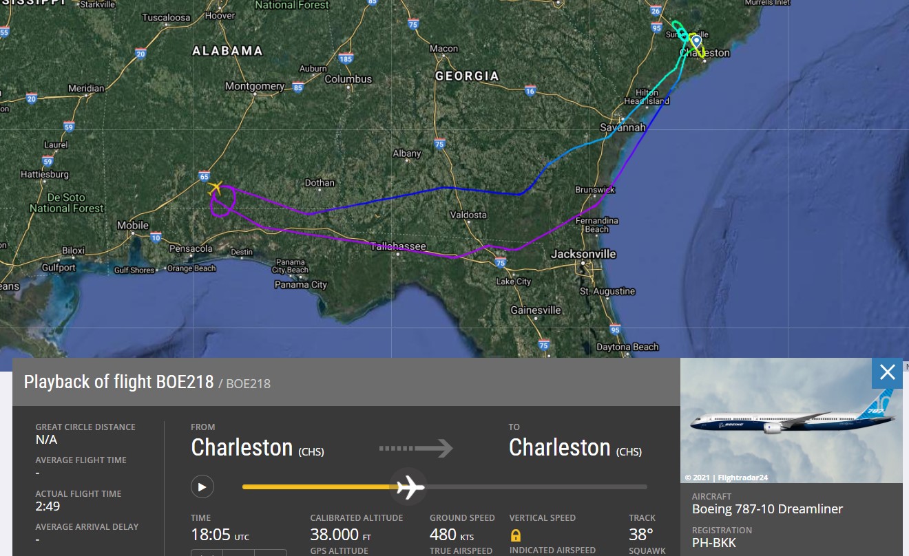 Vrijdag 23 juli maakte een gloednieuwe Boeing 787-10 voor KLM (PH-BKK) haar eerste vlucht. Het toestel steeg met vluchtnummer BOE218 op vanuit Charleston International Airport en klom langs de oostkust naar het zuiden. Op 38.000 voet vloog het toestel richting het westen en draaide vervolgens om, om terug te keren naar het vliegveld van oorsprong. Wat er tijdens de vlucht is getest is niet bekend. Wanneer het toestel wordt geleverd aan KLM is evenmin bekend.