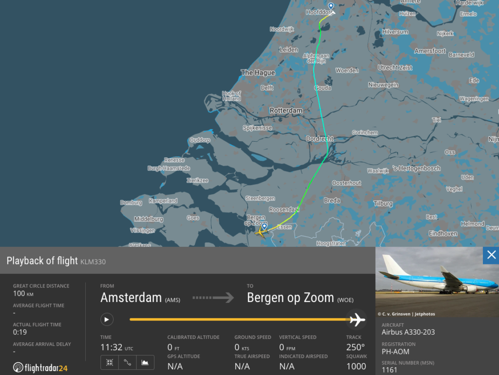 Bekijk hier onder de vlucht van de PH-AOM van Schiphol naar Woensdrecht: