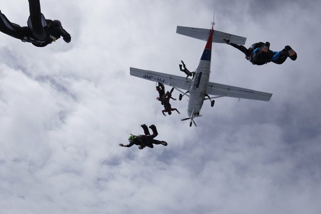 De enorme belangstelling is vooral te danken aan de maximale spronghoogte van 15.000 ft. Een hoogte die bijna nergens in ons land wordt gehaald. Voor parachutisten dus letterlijk de zevende hemel met de mogelijkheid een vrije val van maar liefst 75 seconden te ervaren. Een gelegenheid bij uitstek om als groep para’s verschillende formaties in de lucht te maken.