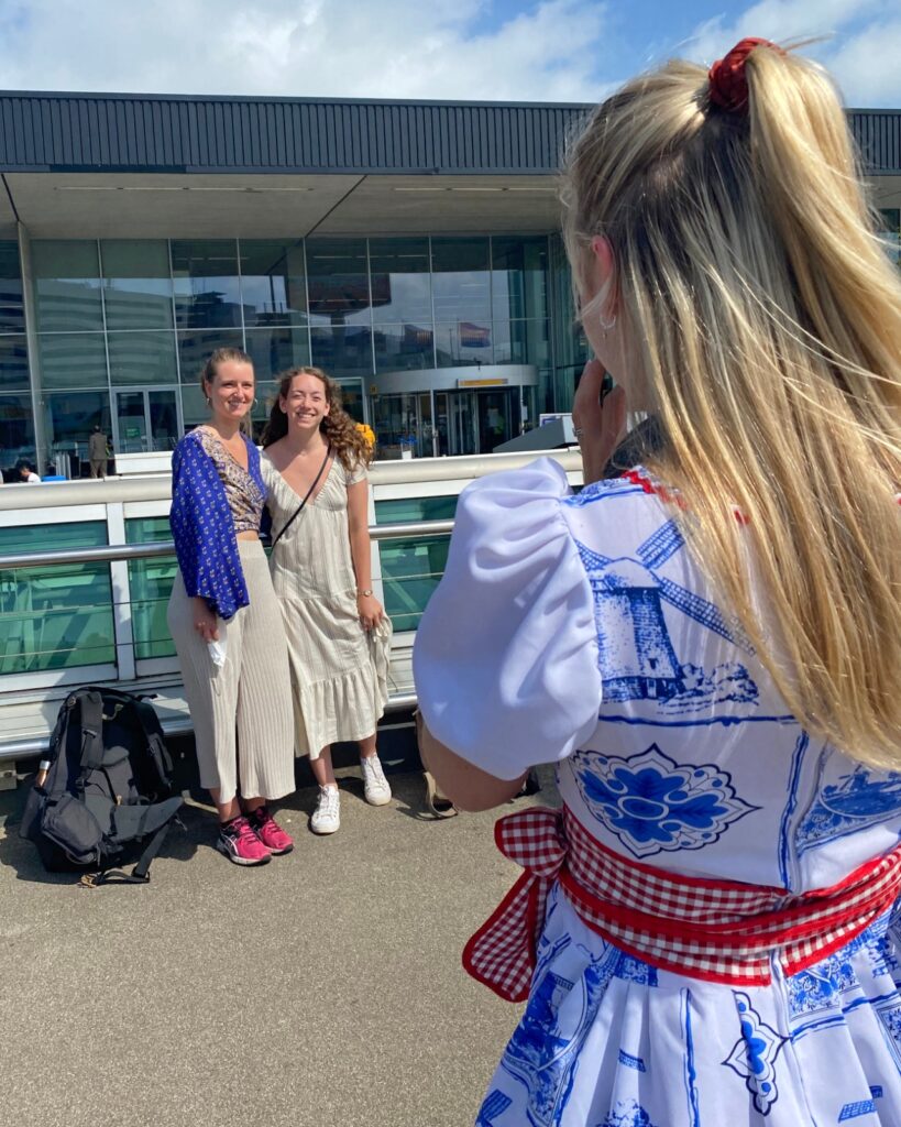 Daar bleef het niet bij. Vanwege de coronamaatregelen wordt wegbrengers en ophalers gevraagd om buiten de luchthaven te wachten. Daar werd gezorgd voor polaroid-fotografen die hen een leuke herinnering meegaven.