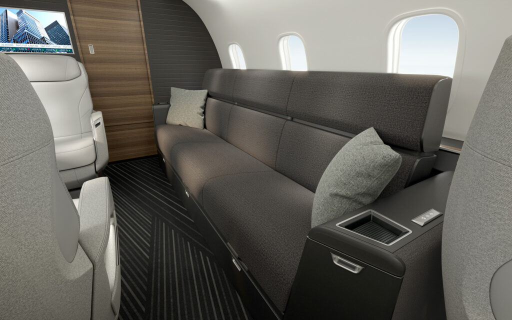 Bombardier onthulde 14 september zijn nieuwste generatie privéjet in Montreal, een luxe vliegtuig waarin tien passagiers mee kunnen.