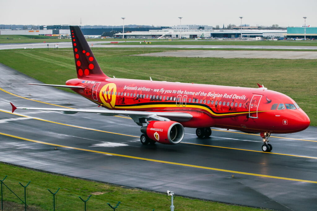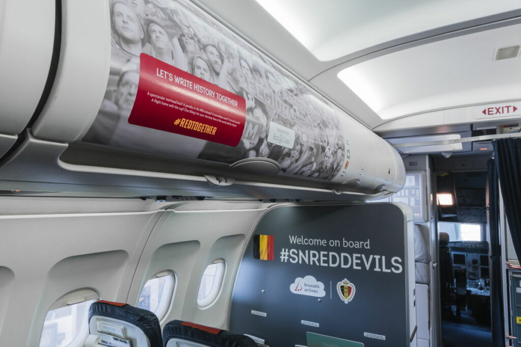 De maatschappij heeft een Airbus A320 in een bijzondere rode kleurenstelling rondvliegen om de samenwerking te vieren. De OO-SNA is ook van binnen voorzien van allerlei stickers. Deze week staat een van de vliegtuigen weer klaar voor het team. De Rode Duivels spelen dan tegen het Franse team in Turijn.