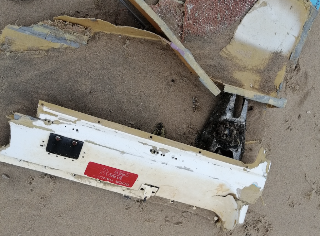 Max Willems, studente Mariene Biologie, maakt dikwijls strandwandelingen waarbij ze de vloedlijn afloopt om aangespoelde krabben te inventariseren. En passant ruimt ze ook afval op. ‘Ik vind vaker gekke dingen. Een kunstgebit, een koelkastdeur. Maar zoiets had ik nog nooit gezien’, vertelt ze aan het Noordhollands Dagblad over haar recente vondst op het strand tussen Wassenaar en Scheveningen. ‘Ik dacht eerst aan een stuk van een schip, dat spoelt wel vaker aan. Maar toen zag ik een plaatje met Switch to normal for flight en Door handling, stricktly crew only. Toen bedacht ik dat het een stuk van een vliegtuig moest zijn.’ Willems maakte foto’s die ze naar de politie stuurde. Bang dat iemand anders het brokstuk zou meenemen was ze niet omdat het zich ruim drie kilometer verwijderd bevond van een strandopgang waar je met de auto kunt komen.