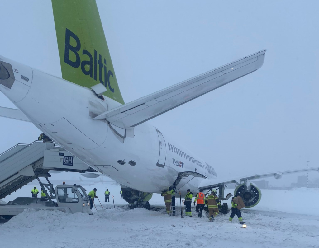 Het toestel kwam na de landing in de sneeuw tot stilstand. Er waren 44 passagiers aan boord, niemand raakte gewond. In een bericht op Twitter bedankt de Letse minister van Buitenlandse Zaken Edgars Rinkēvičs de bemanning, het vliegveld, de brandweer en de overheidsdienst NMPD voor “hun snelle optreden, rust en professionaliteit”.