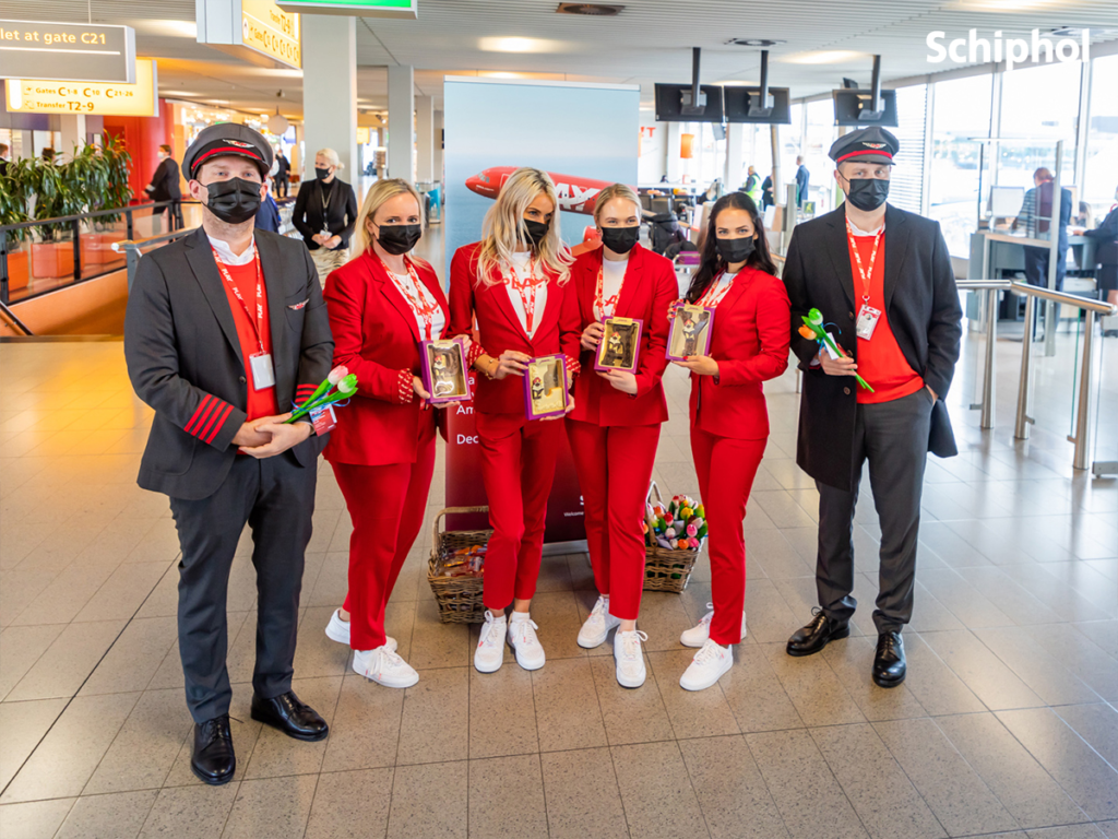 Gisteren landde PLAY voor het eerst op Schiphol. De IJslandse maatschappij kon op een warm welkom rekenen.